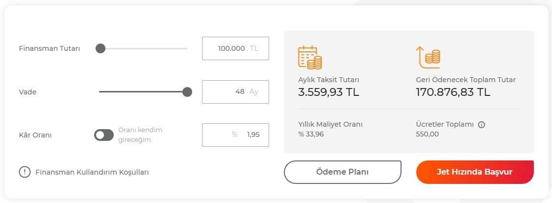 2 milyon TL ve üzerindeki araçları finanse edemeyeceğini bildiren Albaraka Türk Katılım Bankası, bu değerin altındaki araçların 9 yaşa kadar olan tüm modelleri için finansman desteği kullanılabileceğini açıkladı. Öte yandan Albaraka Türk Katılım Bankası, taşıt kredisi faiz oranlarına ilişkin de açıklama yaptı.