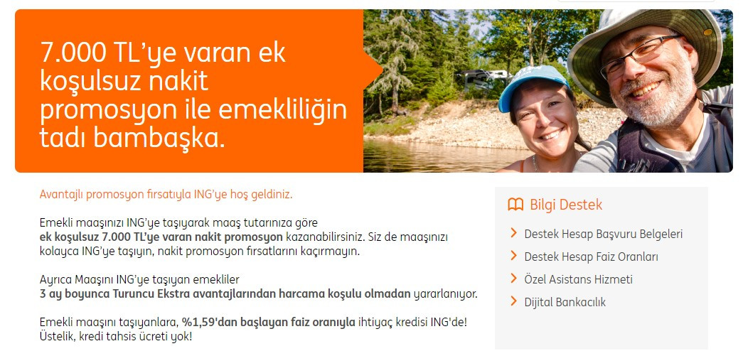 Emeklilere ödenecek olan promosyon rakamı Kasım ayında ING Bank tarafından 7 bin TL olarak açıklanırken bu rakama ek olarak yüzde 1, 59 faiz oranı ile dosya masrafsız ihtiyaç kredisi verileceği de ilan edildi.