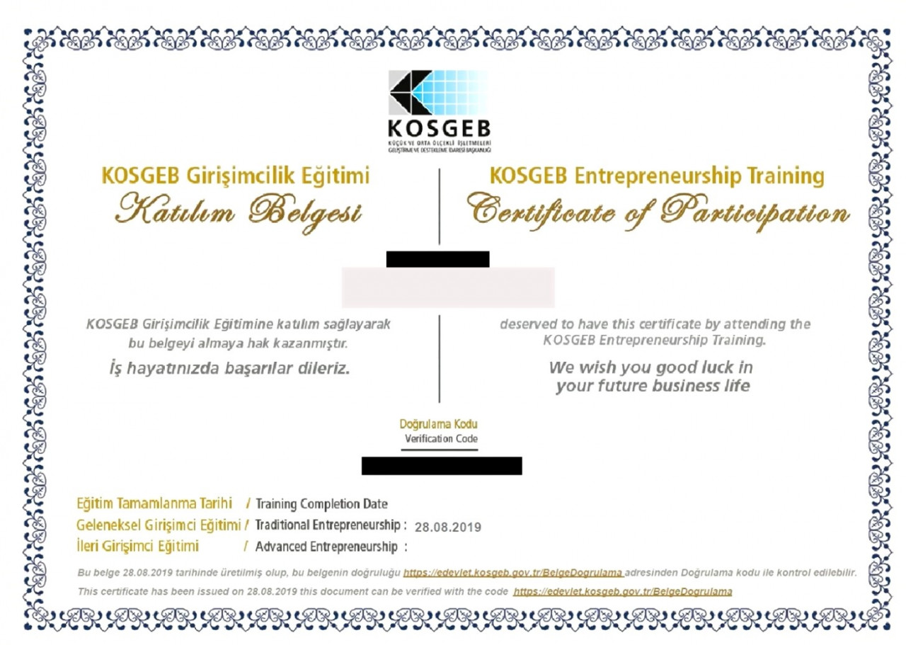 Girişimcilik belgesi KOSGEB eğitiminden sonra KOSGEB tarafından eğitime katılan kişilere verilen sertifikadır. İş kurmayı düşünen kişiler KOSGEB’in hibe desteklerinden yararlanmak için KOSGEB girişimcilik belgesi sahibi olmalıdır.
