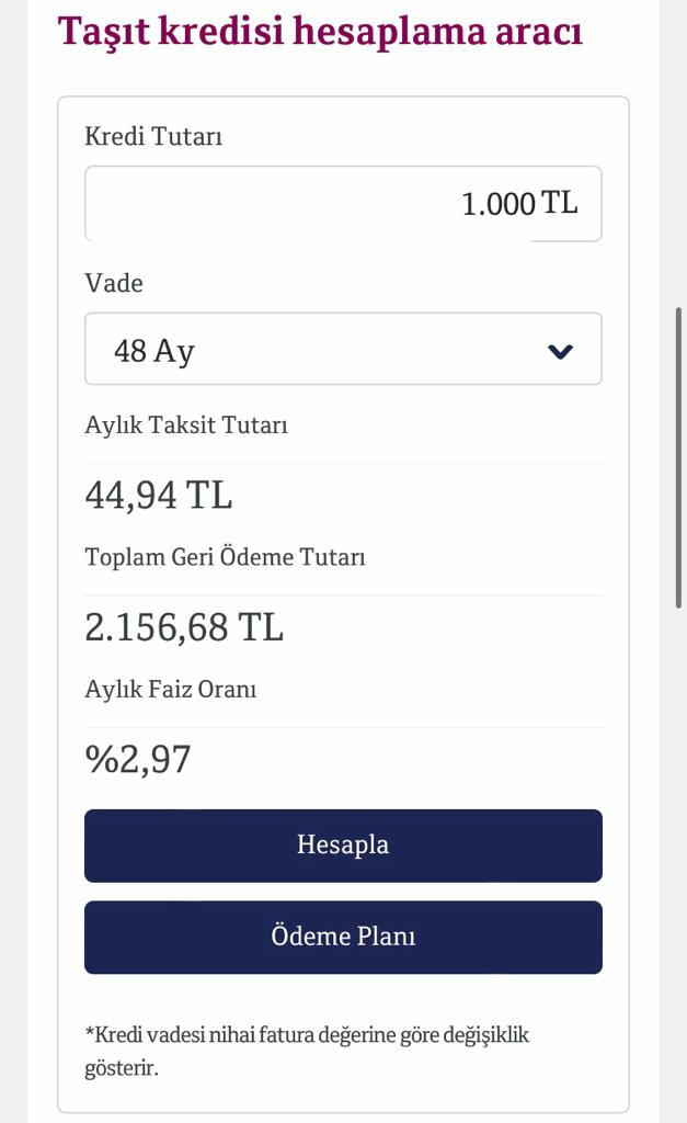Sıfır araçlarda nihai fatura; 2. el araçlarda fatura tutarı yerine aracın kasko değerini dikkate alarak, mevzuata aykırı olmamak kaydıyla aracın bedelinin yüzde 70’ine kadar taşıt finansmanı sağlayan QNB Finansbank, güncel taşıt kredisi faiz oranını ise yüzde 2, 97 olarak açıkladı.