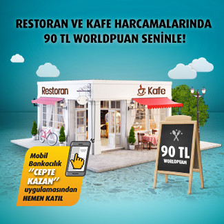 Restoran ve kafe harcamalarınıza 90 TL Worldpuan!