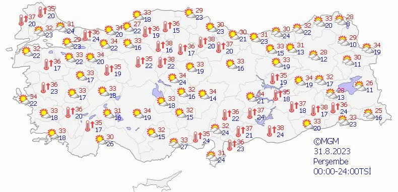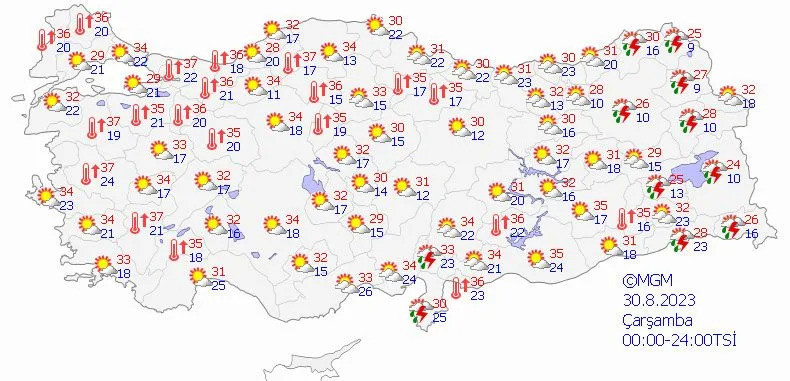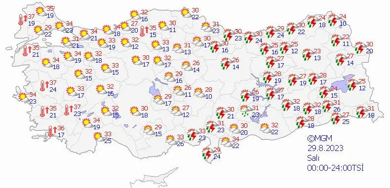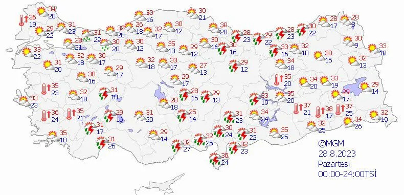 Meteoroloji Genel Müdürlüğü'nün son raporuna göre, Türkiye genelinde etkili olan sıcak hava dalgası, yaklaşık 28 ilde yerini sağanak yağışlara bırakacak.