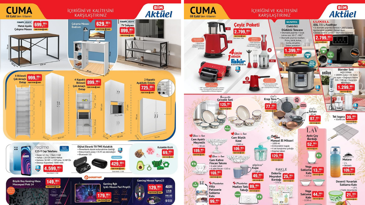 Bim 8 eylül 2023 aktüel ürünler kataloğu yayımlandı! Bim'de çeyiz paketi, düdüklü tencere, çalışma masası çok uygun fiyata