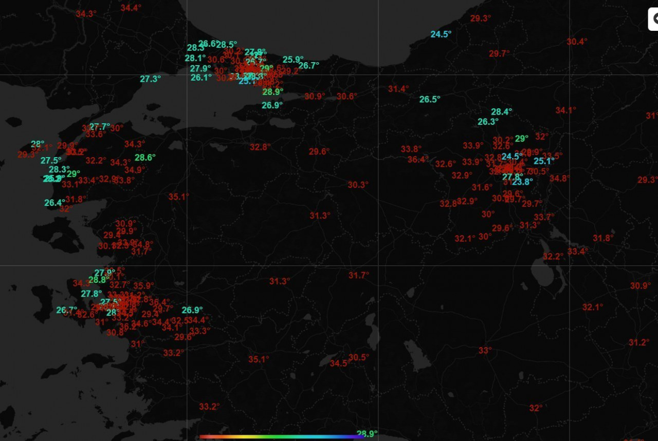 Ancak Batı kesimlerde hava durumu, bugünlere benzer olacak. Gündüzleri rüzgarın etkisiyle sıcaklık yaz normallerine uygun olacak, akşam ve gece saatlerinde ise nemle birlikte yer yer bunaltıcı bir hava oluşabilecektir.