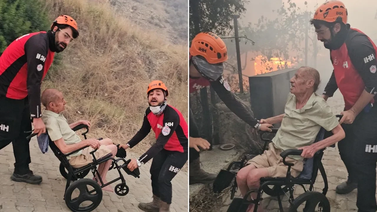 İHH Arama Kurtarma İzmir ekibi, Menderes ile Seferihisar ilçeleri arasında çıkan orman yangınında Ömür Beldesi'ndeki bir sitede evi yanan engelli bir vatandaşı bulunduğu yerden kurtardı.