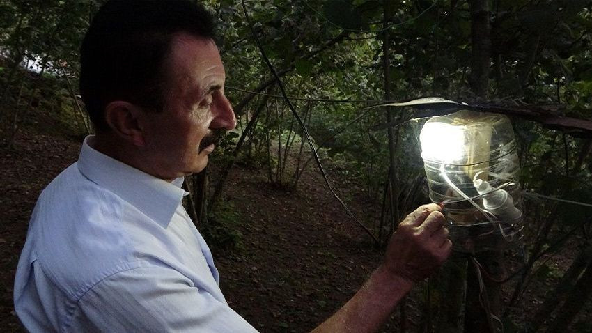 Altınordu ilçesine bağlı Saraycık Mahallesi’nde ikamet eden Necdet Pala, 20 dönüm fındık bahçesine sahip. Ancak son zamanlarda bahçesinin üst kısmında bulunan ormanlık alandan gelen ve mahsulüne zarar veren domuzlardan illallah etti. Önceki yıllarda fındık sezonunda bahçede geceleri nöbet tutan, aydınlatma sistemi yapan Pala,  olumlu bir sonuç alamayınca 6 yıl önce Karadenizli zekasını kullandı.