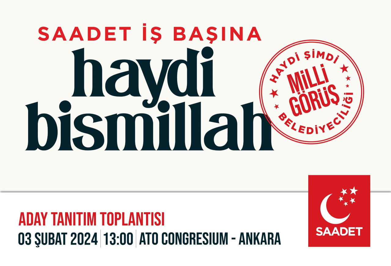 Ankara ATO Congresium’da 3 Şubat Cumartesi günü yapılacak toplantıda, “Saadet İş Başına Haydi Bismillah” sloganı kullanılacak.