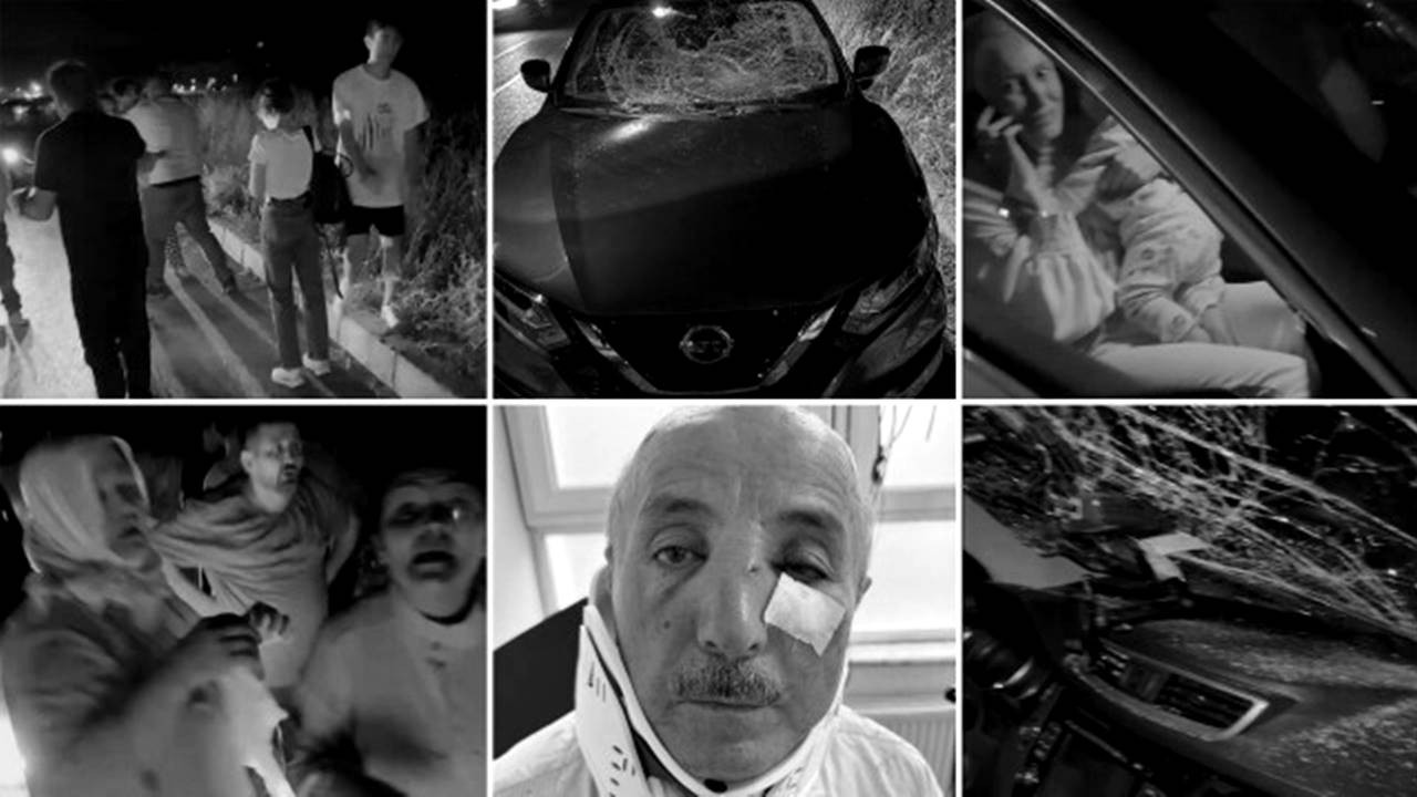 İki araçla arka arkaya seyir halinde olan aile, başka bir araç tarafından taciz edilerek sıkıştırıldı. Bu duruma selektör ve korna ile tepki veren ailenin araçlarının önü kesilerek saldırıya uğradı.