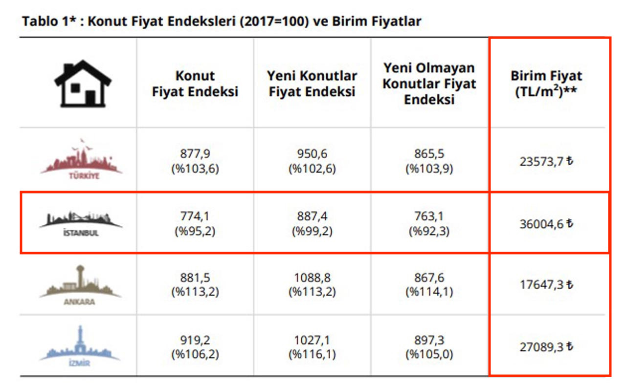 İstanbul’da bir evin metrekaresi 36 bin 4 Türk Lirası’na (TL) yükseldi. Başka bir ifade ile 100 metrekare ortalama bir konutun fiyatı 3, 6 milyon TL’ye çıktı.