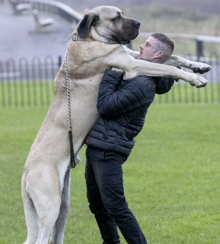Avrupa’nın en büyük köpeklerinden biri olan Türk malaklısı cinsi köpek, İngiltere’de yaşayan bir adamın gözdesi oldu. Dylan Shaw, her gün 4 tane tavuk yiyen ve aylık 62 bin TL’lik masraf çıkaran dev köpeği Abu ile mutlu bir hayat sürüyor. Abu, cüssesine rağmen uysal ve sevecen bir köpek olarak tanınıyor.