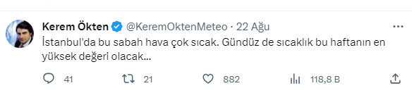 "İstanbul'da Bu Sabah Hava Çok Sıcak. Gündüz De Sıcaklık Bu Haftanın En Yüksek Değeri Olacak...