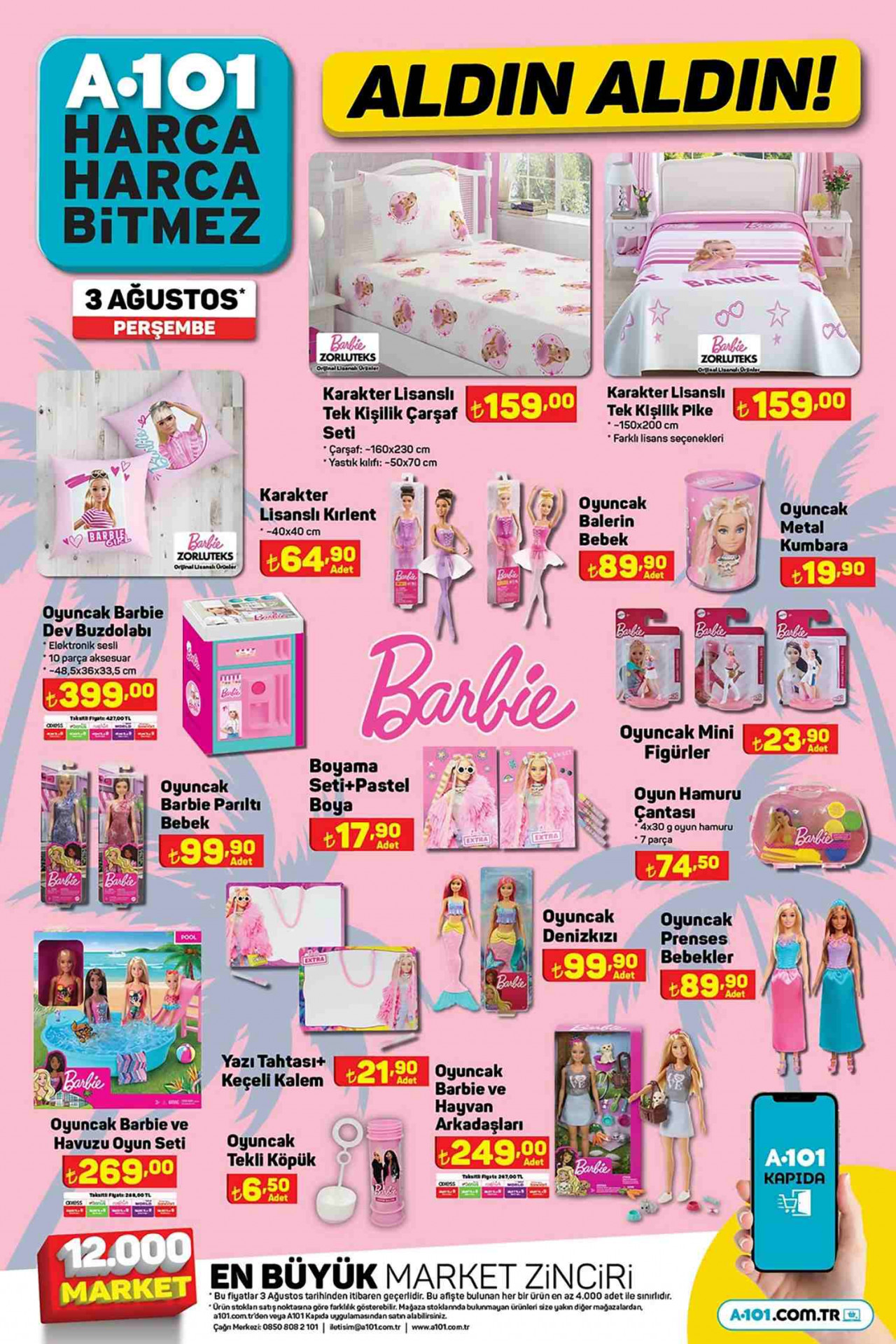 A101 3 Ağustos 2023 kataloğunda meraklı bekleyiş sona erdi. Resmen açıklanan A101 Aktüel kataloglarında çarpıcı ürünler dikkatleri üzerine çekerek haftaya indirim bombası etkisi yarattı. A101 kataloğunun yeni sayısında bulunan fırsatlar herkes tarafından büyük bir coşkuyla karşılanırken özellikle ürün beklentisinde olanları da sevindirdi. Üstelik son zamanlardaki Barbie & Oppenheimer kapışmasının da bir yansıması sonucu Barbie temalı ürünler yüzleri gülümsetti. İşte merakla beklenen o ürünler hakkında kısa kısa bilgiler ve fiyat incelemesi…