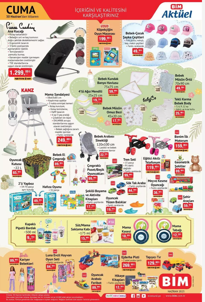 Tüketicilerin merakla beklediği BİM'in 30 Haziran 2023 tarihli aktüel ürünler kataloğu sonunda yayımlandı. Yeni katalog, geniş bir ürün yelpazesiyle dikkat çekiyor ve pek çok kişinin ihtiyaçlarını karşılamaya yönelik cazip fırsatlar sunuyor. Özellikle bebek ürünleri kategorisindeki indirimler, ebeveynlerin dikkatini çekiyor.