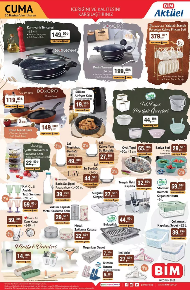 BİM'in 30 Haziran 2023 aktüel ürünler kataloğu, tüketicilerin ihtiyaçlarını karşılamak için geniş bir ürün yelpazesi sunuyor. İndirimli fiyatlar ve kaliteli ürün seçenekleri, alışveriş yaparken hem bütçeyi korumayı hem de ihtiyaçları karşılamayı hedefleyen tüketiciler için oldukça cezbedici. Bu fırsatları kaçırmamak için katalogdaki ürünleri yakından incelemek ve ihtiyaçlar doğrultusunda bir alışveriş yapmak önemlidir.