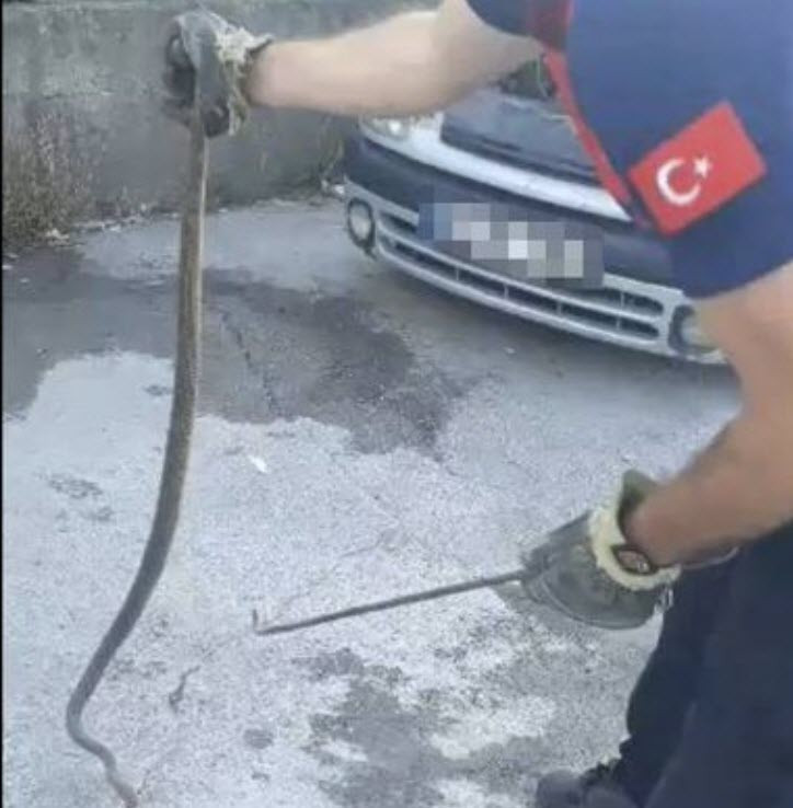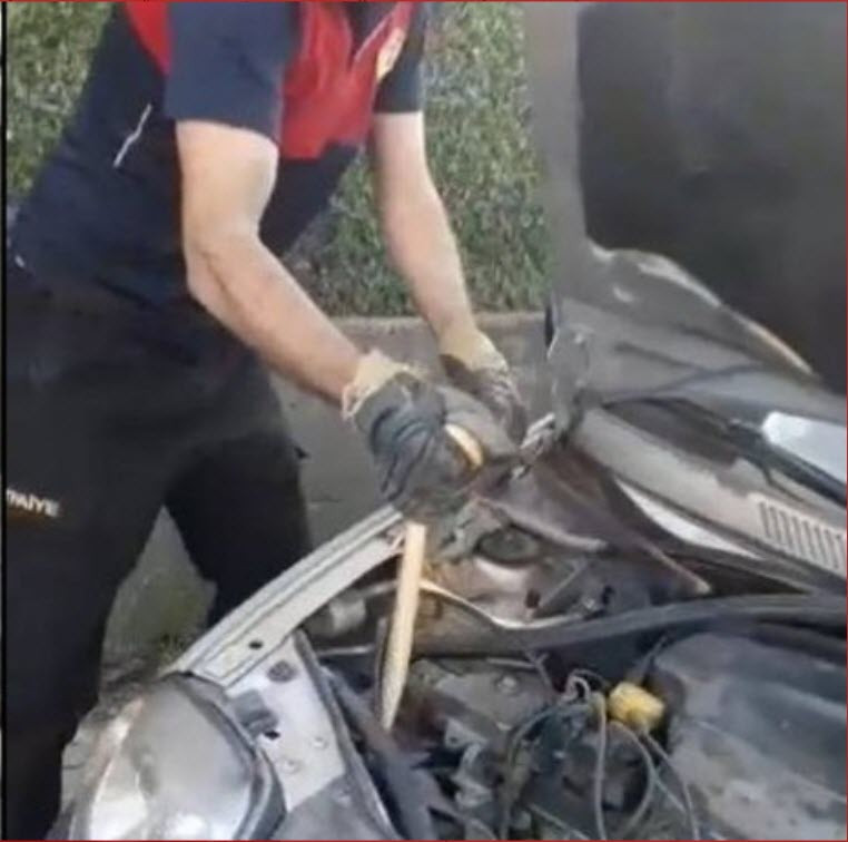 İhbar üzerine itfaiye ekibi bölgeye sevk edildi. Otomobilin motor kısmına saklanan yılanı tespit eden ekipler çalışma başlattı. Boyu yaklaşık 2 metre olan yılan saklandığı yerden çıkarılarak doğaya salındı.