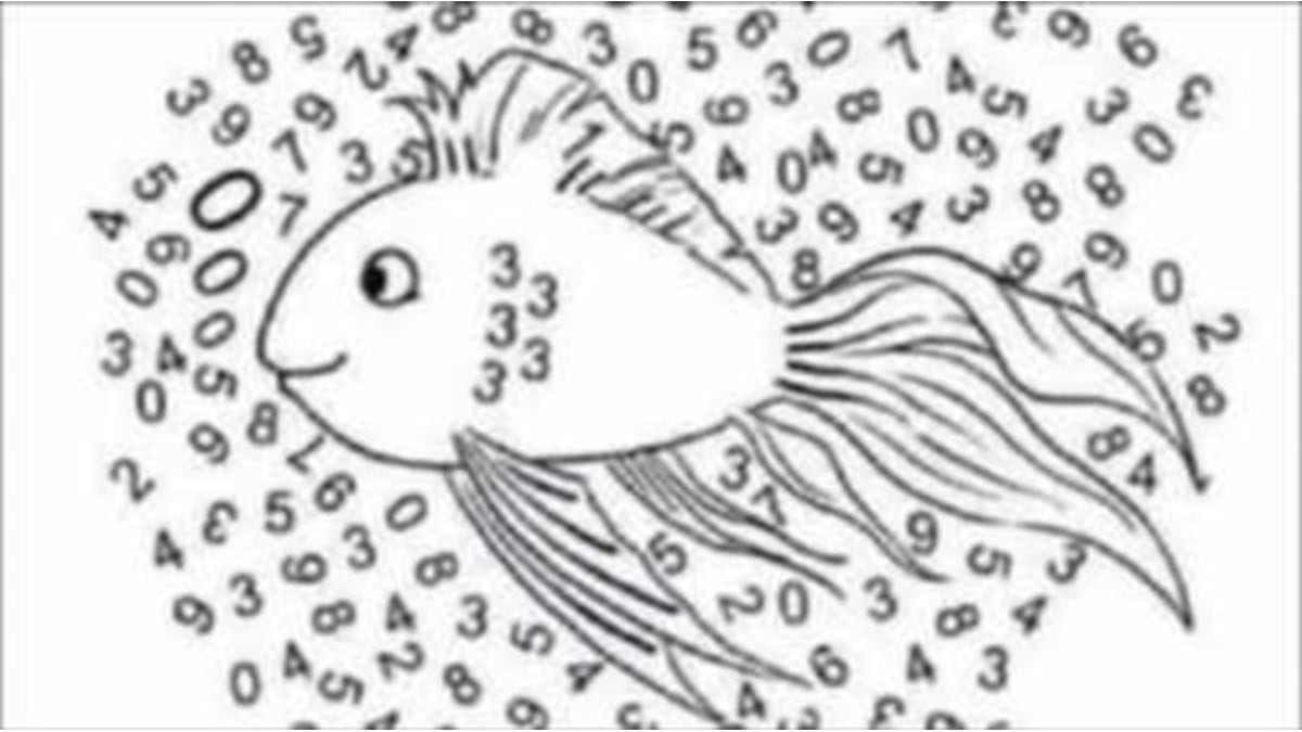 Burada bir balık resmimiz var. Resim, sayılar kullanılarak yaratıcı bir şekilde tasarlanmıştır. Balığın yüzgeçleri birkaç 3 ile temsil edilir. Balıkların her yerinde numaralar var. İddialar bu resimde 1 numaranın gizli olduğunu söylüyor.