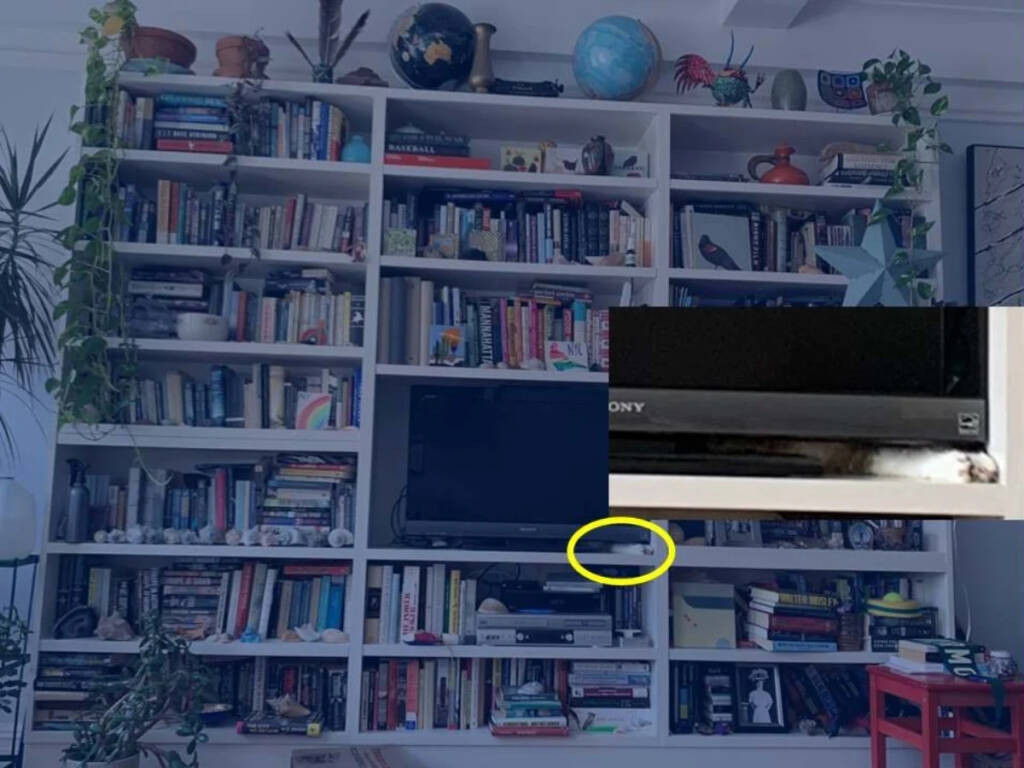 Burada bir evin içinde eğlence birimi gibi görünen bir resim var karşımızda. Bir TV, kitaplar, dünya küreleri vs. var. Bitki tırmanıcıları kitaplığın bazı kısımlarını kaplıyor. Ancak bu resimdeki asıl zorluk bir kedi bulmaktır. Twitter'da paylaşılan bu fotoğraf, netizenlerden bu fotoğrafta saklanan kediyi bulmalarını istiyor.