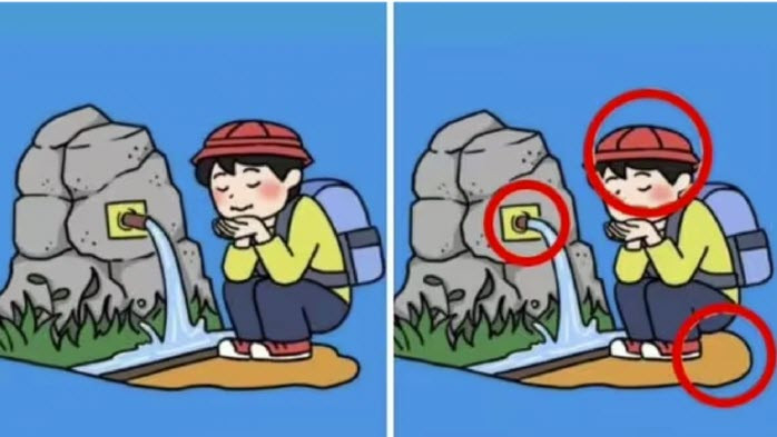 Yukarda yer alan görselde çocuk eğilerek çeşmeden su içmeye çalışıyor. Görselden iki adet olmasıyla birlikte birbirleri arasında dikkatli bakılmadığı sürece görülmeyecek farklar yer alıyor. İki resim arasındaki 3 farkı 8 saniye içerisinde bulmanız ise IQ seviyenizin yüksek olduğunu belirtiliyor.