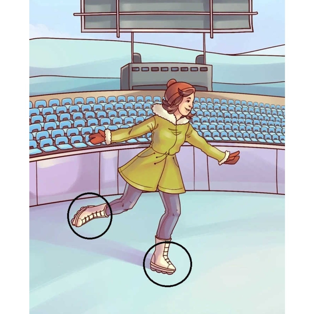 Resimdeki hata şu: Sahnedeki kız, buz pateni gerektiren bir buz pateni pistinde kayarken tekerlekli paten giyerken görülebilir.