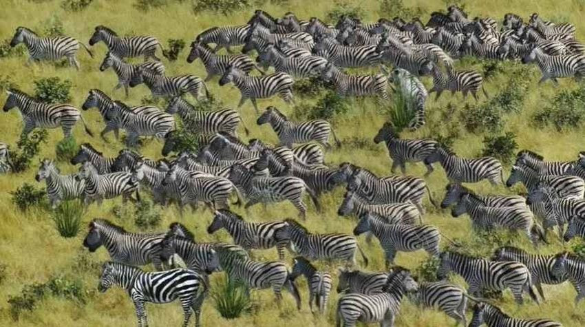 Bu optik illüzyon testinde, bir otlakta sakin sakin otlayan bir zebra sürüsü görebilirsiniz. Zebra sürüsünün yanı sıra başka hayvanlar da var.