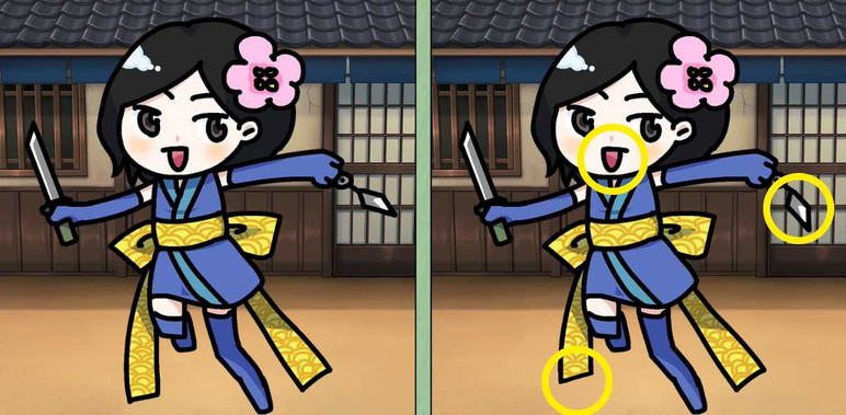 Japon kızın ağzına, kuşağına ve elindeki nesneye dikkat edenler 3 farkı 6 saniyede bulabildi.
