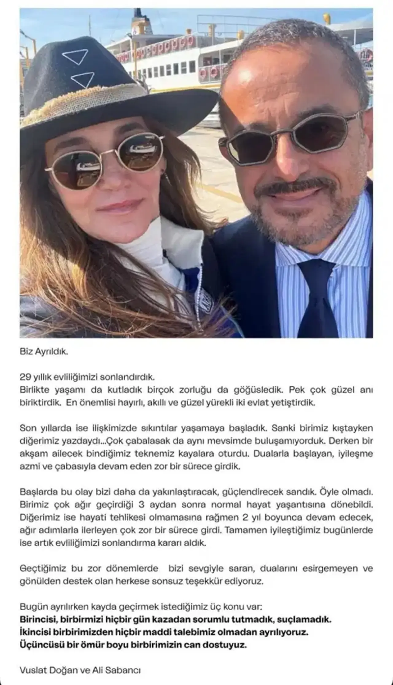 Ali Sabancı ve Vuslat Doğan'ın yaptığı ortak açıklama şöyle: