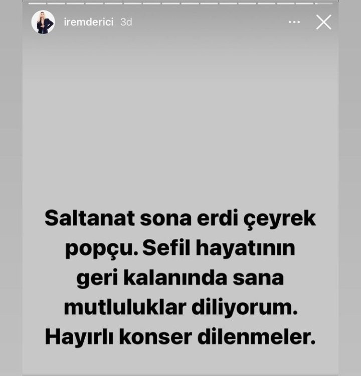 Aldatıldığını öğrendikten sonra beraber çektikleri “Belki” klibini kaldırtan Derici, Instagram hesabından Belevi’yi hedef alarak “saltanatın sona erdi çeyrek popçu” yazmıştı.