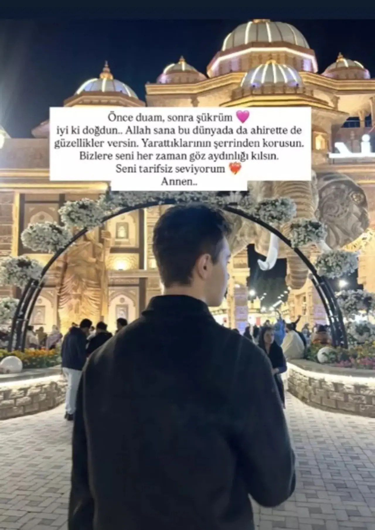 “Önce duam, sonra şükrüm. İyi ki doğdun… Allah sana bu dünyada da ahirette de güzellikler versin. Yarattıklarının şerrinden korusun. Bizlere seni her zaman göz aydınlığı kılsın. Seni tarifsiz seviyorum annen.”