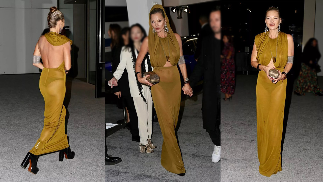 Geçtiğimiz günlerde özel bir geceye katılan Kate Moss, transparan elbisesiyle dikkatleri üzerine çekti. Sütyen giymeyi tercih etmeyen Moss, yıllara meydan okuyan fiziği ile magazin gündeminde ilk sıraya yerleşti. Yeşil renk elbisesiyle dikkat çeken model ayakkabı detaylarıyla da ilgi gördü.
