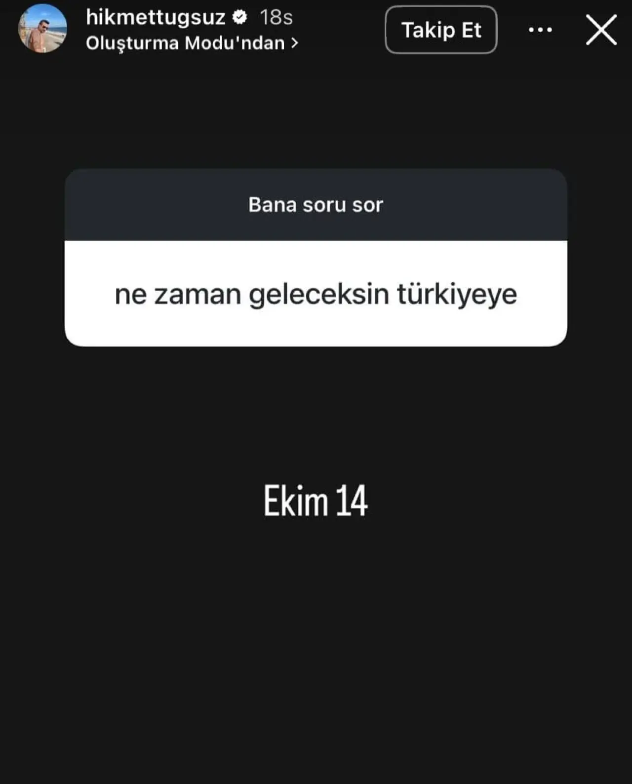Survivor yarışmasından hakkında çıkan tutuklama kararı sonrası ayrılan Hikmet Tuğsuz, Türkiye'ye ne zaman döneceğiyle ilgili sessizliğini bozdu. Hakkındaki adli sürecin gölgesinde olan Tuğsuz, sosyal medya hesabından yaptığı açıklamayla 14 Ekim’de Türkiye’de olacağını duyurdu.