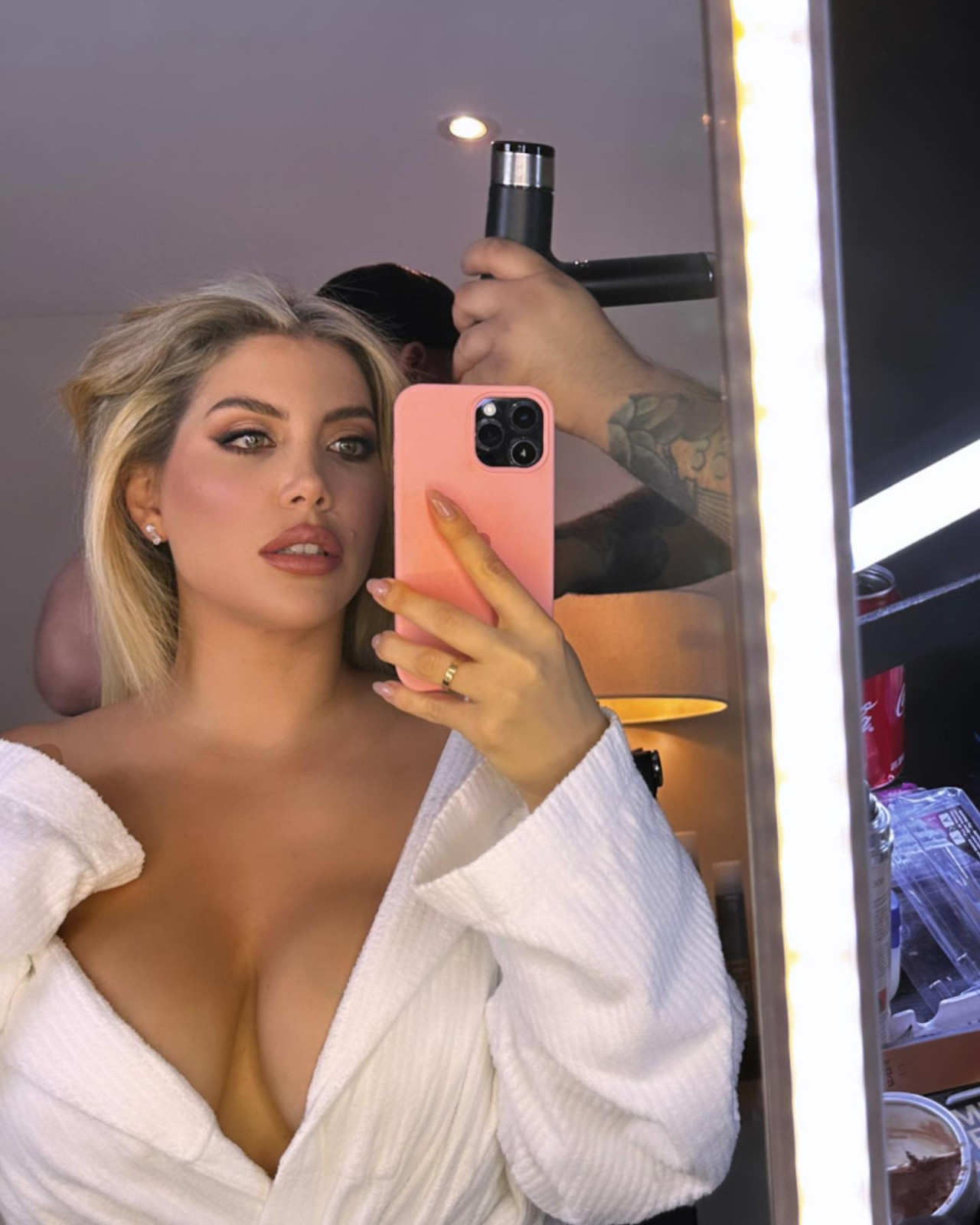Galatasaray'ın Arjantinli futbolcusu Mauro Icardi'nin eşi Wanda Nara, sosyal medyada iddialı paylaşımlarıyla dikkat çekiyor. Kozmetik markasının çekimleri için hazırlanırken bornozlu pozlarını paylaşan Nara, Türk takipçilerinden yoğun yorumlar aldı.