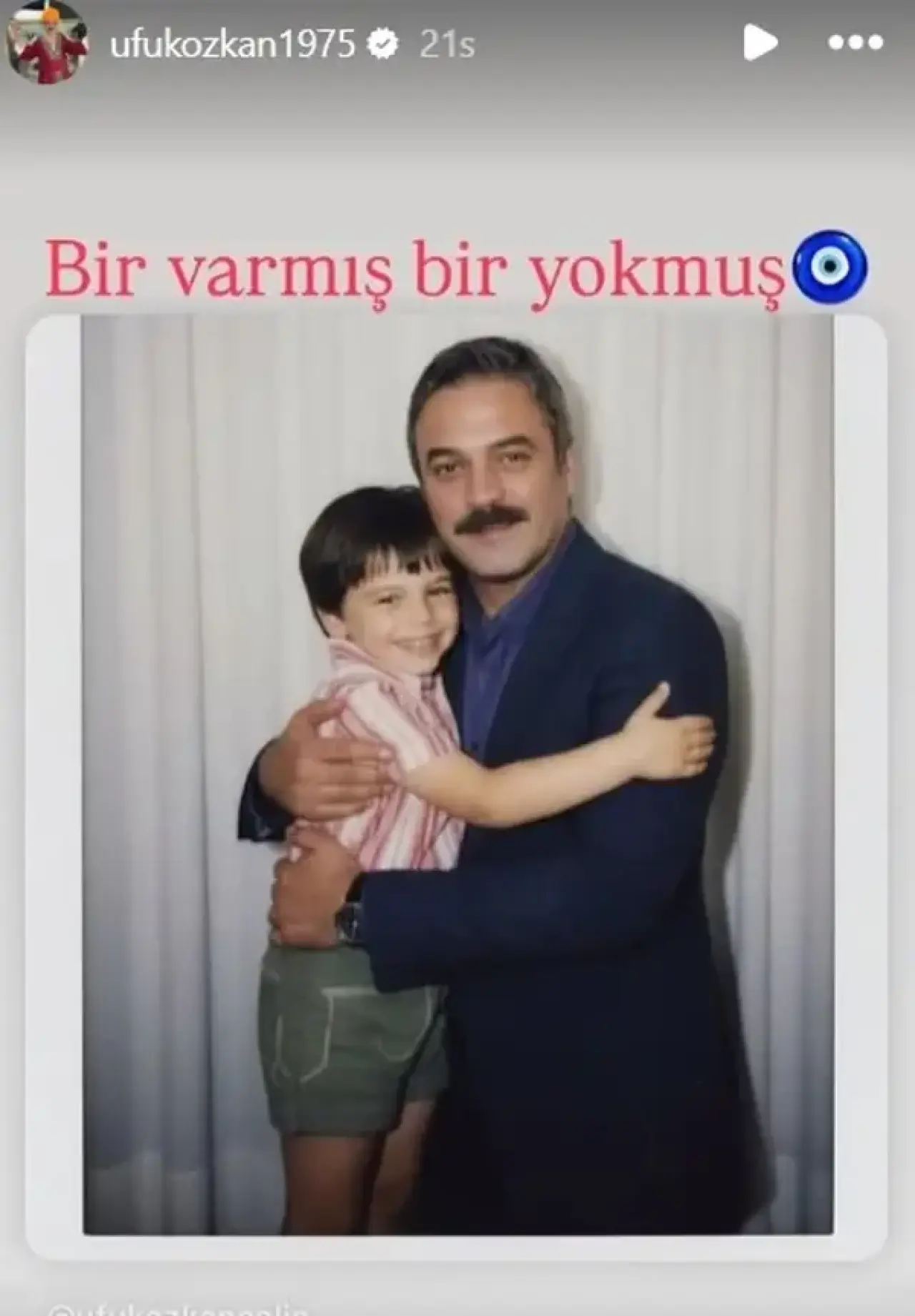 Ufuk Özkan dün yapay zekayla oluşturulan çocukluk haline sarıldığı kareyi “Bir varmış bir yokmuş” notuyla paylaşmıştı.