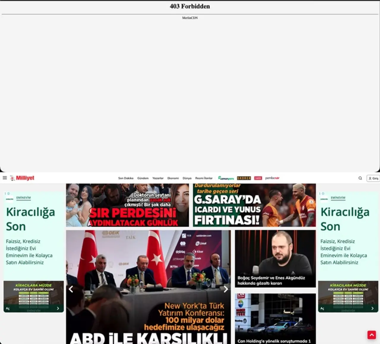 İnternet siteleri bir süre sonra 403 hata kodu verdi.