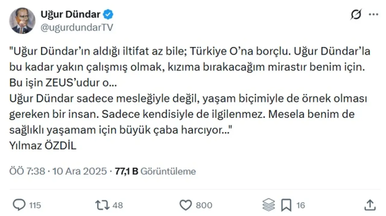 Uğur Dündar Geçmişteki Övgüyü Hatırlattı