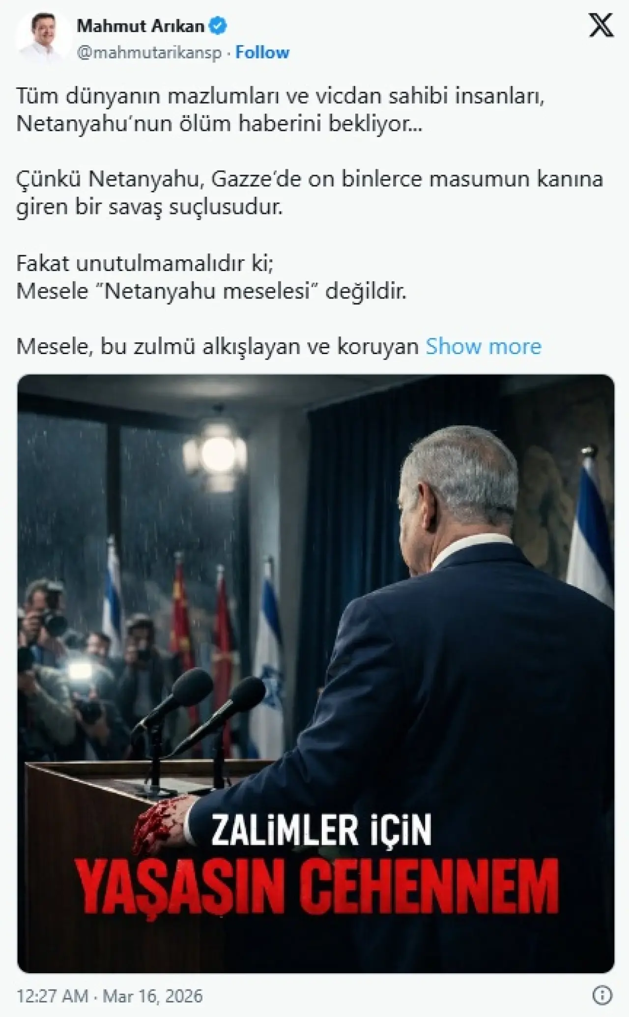 Saadet Partisi Genel Başkanı Mahmut Arıkan, sosyal medya hesabından yaptığı paylaşımda İsrail Başbakanı Binyamin Netanyahu ile ilgili dikkat çeken değerlendirmelerde bulundu.