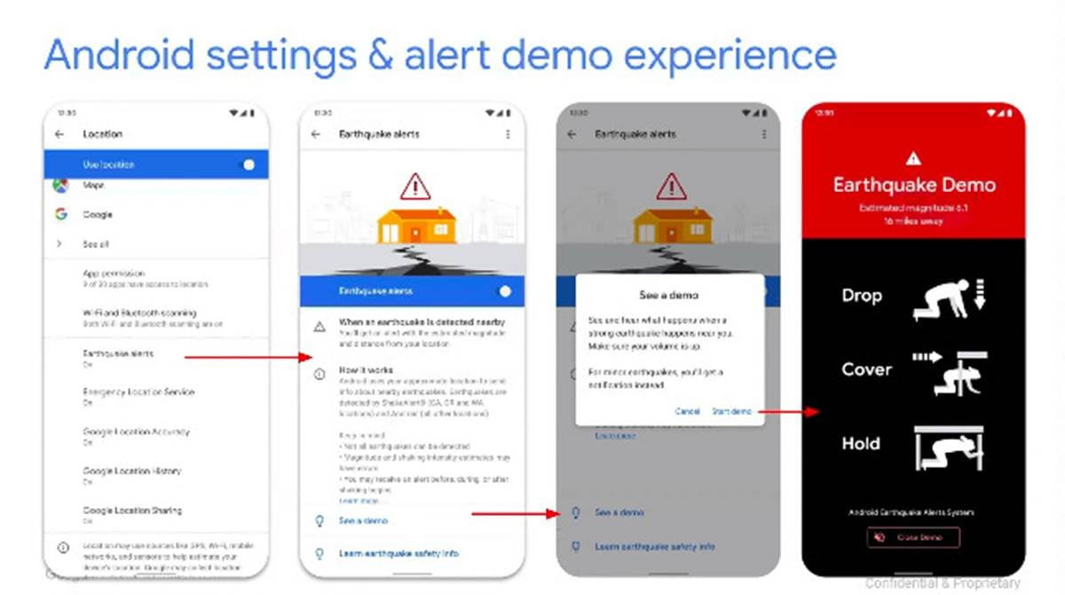 3 milyardan fazla Android cihazda bulunan ivmeölçer donanımı sayesinde sarsıntı algılanıyor ve bölgedeki Android kullanıcılarına uyarı bildirimi gönderiliyor.